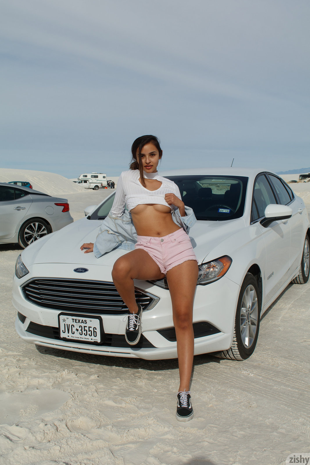 A busty brunette that has calm looks and a sweet and tender vibe around her. No one would have ever expected her to be a naturally seductive babe! Underneath that precious smile and cute clothes is an irresistible beauty with two huge tits and a fine ass that will stop your world. Her smile brings delight in the hearts of many, and her tits and finely-shaved pussy gives men the throbbing of a lifetime.